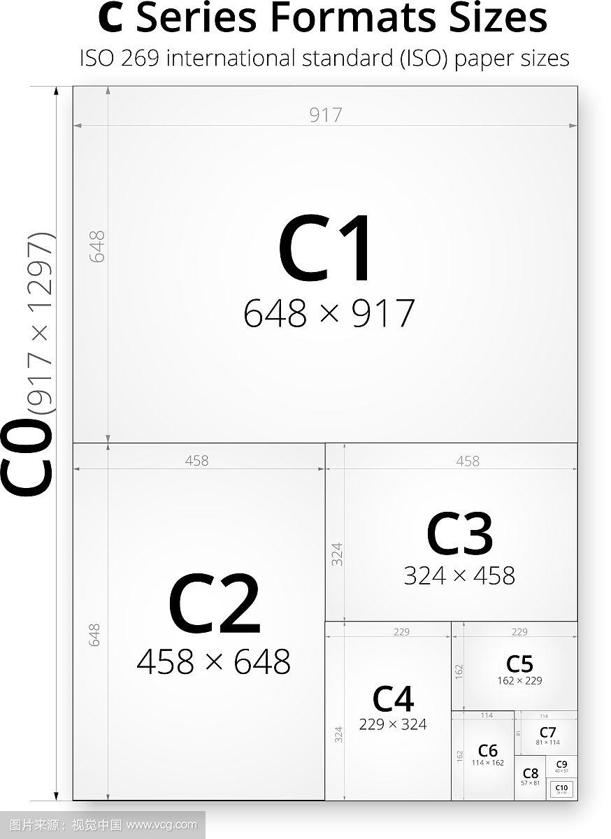 C系列的制定基础是将A系列和B系列的尺寸作几何平均而求得的。例如C4的纸张尺寸是A4和B4尺寸的几何均,且纸张长宽比仍为2的平方根:1。这样一来,C4的尺寸系介于A4和B4之间,A4的纸张可以装入C4大小的信封袋中,而C4的纸张可以装入B4大小的信封袋中。